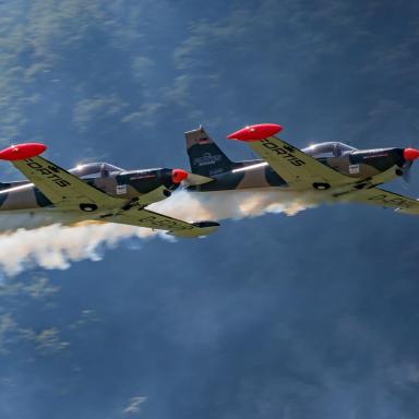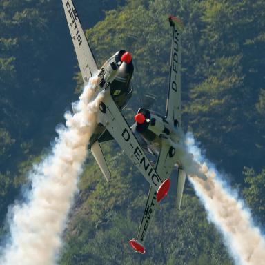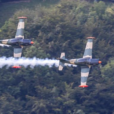 In den Cockpits dieser majestätischen Maschinen werden Sie Vater und Sohn sehen. Der junge Nico, 29 Jahre alt, führt das Team als Teamleiter an und besitzt bereits seit seinem 16. Lebensjahr eine Lizenz für das Motorfliegen. Sein Vater Ralf, ein 57-jähriger Veteran der Flugshows, ist sein zuverlässiger "Wingman" in der Luft. In der Tschechischen Republik wird dieses Duo zum ersten Mal auftreten.