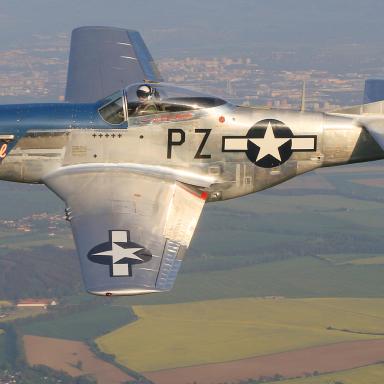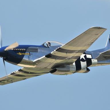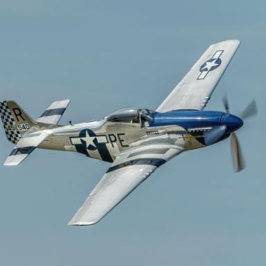 Der einsitzige P-51 Mustang erlangte Berühmtheit durch seine Geschwindigkeit und große Reichweite, die es ihm ermöglichte, amerikanische Bomber effektiv während ihrer Einsätze über Deutschland und Japan während des Zweiten Weltkriegs zu eskortieren. Während der Kriegseinsätze über Europa zeichnete sich der Mustang durch seine Fähigkeit aus, strategische Bomber wie die B-17 und B-24 zu schützen und zu unterstützen, was eine Schlüsselrolle bei der Luftüberlegenheit der Alliierten spielte.