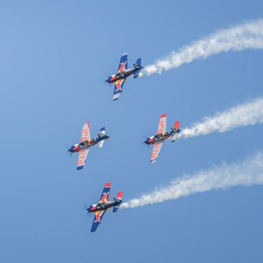 Že už jste někdy tuto skupinu viděli? Věřte, že to vůbec nevadí. Flying Bulls Aerobatics Team totiž vyhledávají další výzvy a připravují čím dál obtížnější sestavy. „Při vystoupeních nalétáme až 70 kilometrů, během kterých předvedeme přibližně 38 akrobatických prvků. Naše těla se přitom musejí vyrovnávat s obrovským přetížením +7G / -5G. Tlak, který přitom působí, je obrovský,“ popisují.