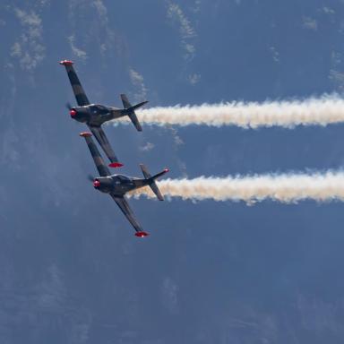 In den Cockpits dieser majestätischen Maschinen werden Sie Vater und Sohn sehen. Der junge Nico, 29 Jahre alt, führt das Team als Teamleiter an und besitzt bereits seit seinem 16. Lebensjahr eine Lizenz für das Motorfliegen. Sein Vater Ralf, ein 57-jähriger Veteran der Flugshows, ist sein zuverlässiger "Wingman" in der Luft. In der Tschechischen Republik wird dieses Duo zum ersten Mal auftreten.