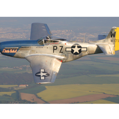 Der einsitzige P-51 Mustang erlangte Berühmtheit durch seine Geschwindigkeit und große Reichweite, die es ihm ermöglichte, amerikanische Bomber effektiv während ihrer Einsätze über Deutschland und Japan während des Zweiten Weltkriegs zu eskortieren. Während der Kriegseinsätze über Europa zeichnete sich der Mustang durch seine Fähigkeit aus, strategische Bomber wie die B-17 und B-24 zu schützen und zu unterstützen, was eine Schlüsselrolle bei der Luftüberlegenheit der Alliierten spielte.
